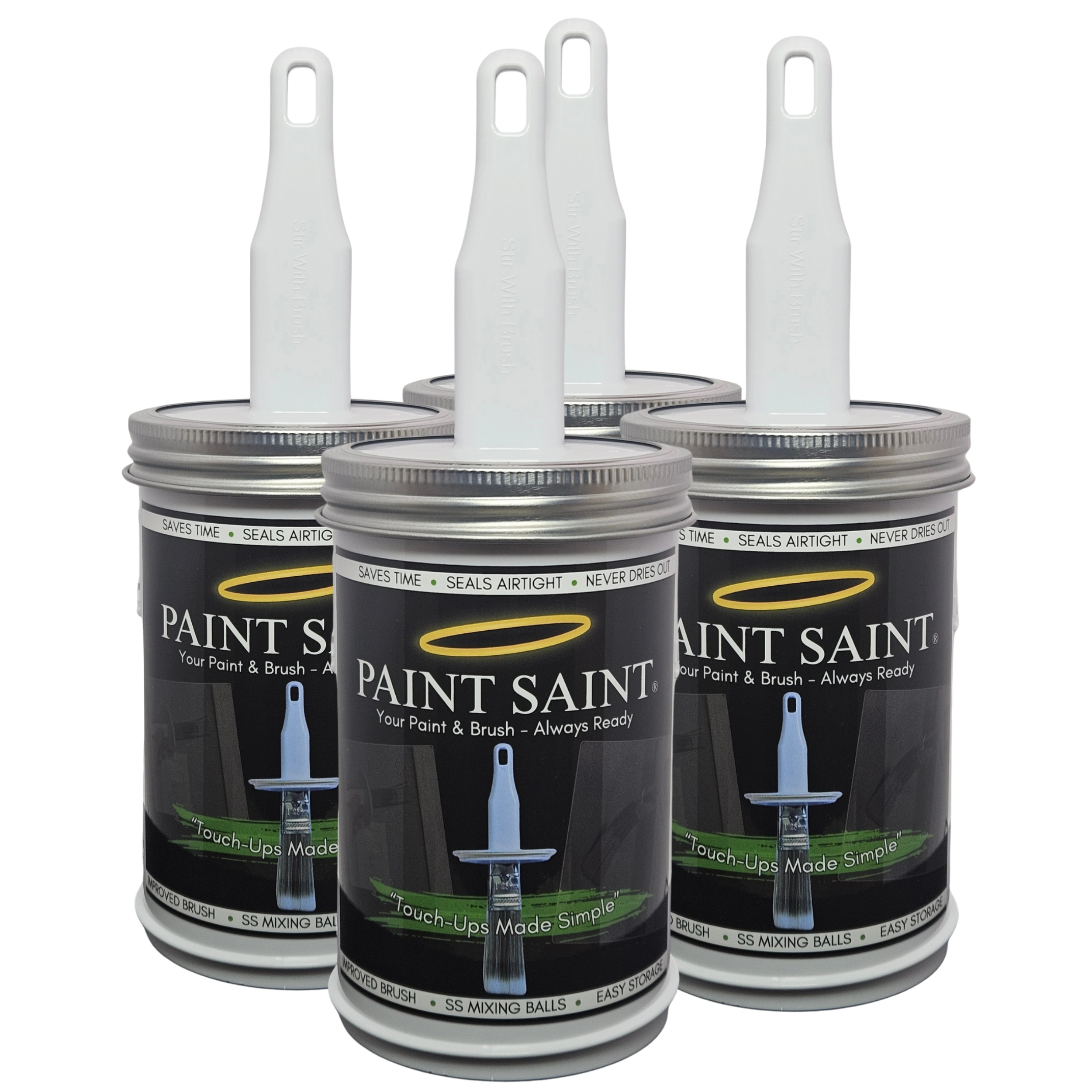 Airtight Paint Touch Up Container with Built-In Brush for Refillable Paint Storage | Paint Saint | Home Touch-Up Solution (4 Pack)